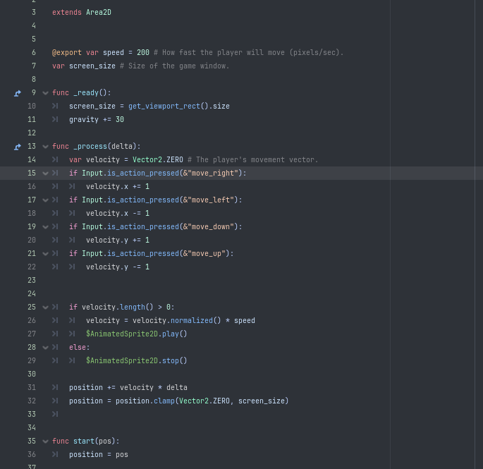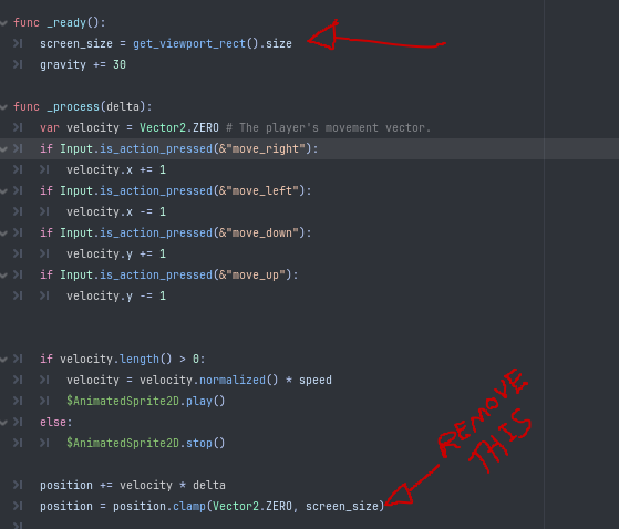 thank you! the code is the basic player movement code from the 2d movement tutorial on the godot website, because i’m new to GDscript and not confident in writing my own code. i’m not entirely sure what the viewport/screen size does here, and i couldn’t find any answers, so i didn’t want to fiddle with it without understanding.
