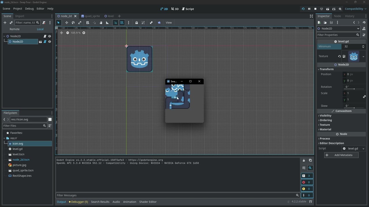 - I need to understand how to fit image on screen while using Node2D, because i dont know much about using Control node and dont even know if i can show only part of an image when also being able to rotate and move it. (i think it is possible, i just dont know how to, so im gonna use 2d node)