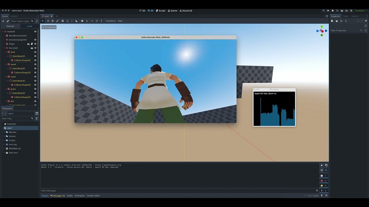 Initially I was more interested in Swift , then Python but Swift is not very usable for other platforms and Python performance in 3D is just terrible and on top of it not all pypi packages are available on Mac , so Godot is just sweet spot for Mac OS as it also implemented Metal in their pipeline , and now when export to Mac OS it also turn on Game Mode which is great as in depreciated SceneKit it needed a bit extra push to have it .