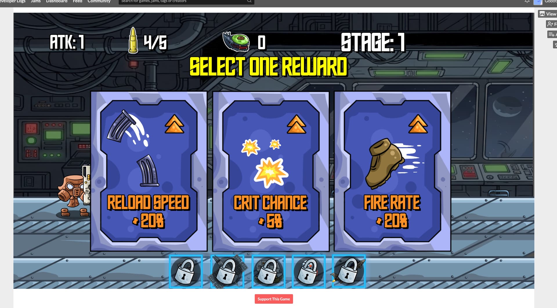 very cool, and the graphics are amazing. If you want to keep the game in html, then yous should keep the game screen at a normal resolution and enabled the button “full screen”, but the viewport was too big for my laptop, and I couldn’t zoom out. I suffered some lag with the bullets and the eggs, or maybe it was an impression. Also, the animation of reload doesn’t fit when you can really open fire again. Otherwise, I had fun and though it could be cool to have features like jumping or send projectiles back.