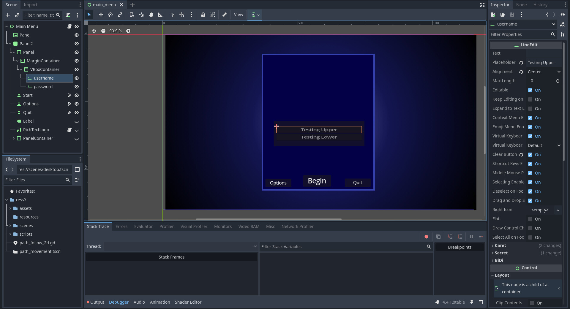 I’ve included some images to show what my issue is. The Line Edits have become slanted and I’m not sure why. A bunch of tutorials have had me try using expand to make the size of each box bigger, but that’s not something I want. Is it possible to fix the slanting issue? Or should I start over?