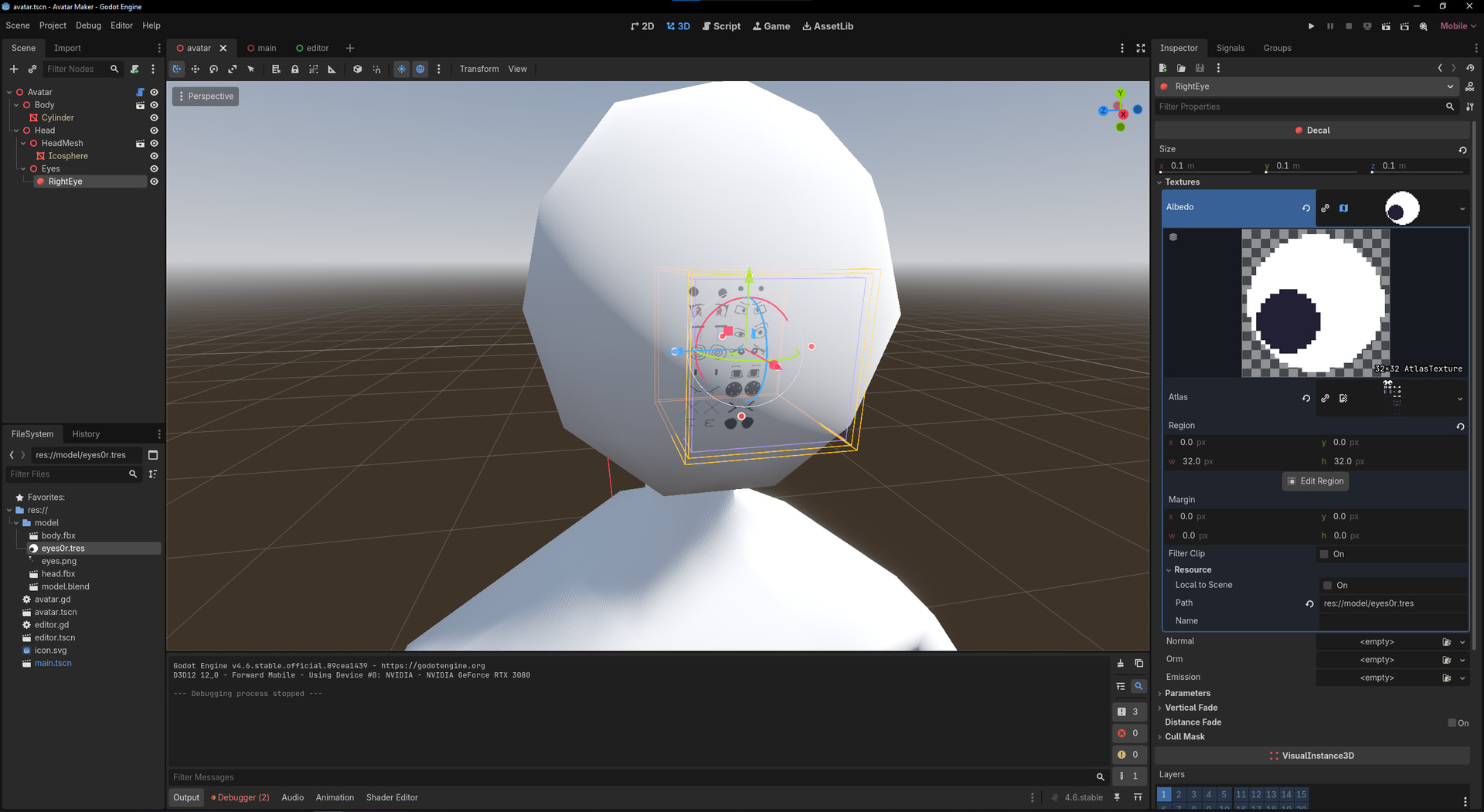 I created an AtlasTexture resource, chose the Atlas image and saved it. I then created a Decal and under Textures → Albedo I clicked Load and chose the resource file I just created. I positioned the Decal and went to adjust the AtlasTexture’s region. When I noticed that the Decal didn’t update on the editor’s viewport, I re-selected the resource to be it’s albedo texture, but nothing changed.