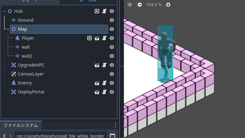 My scene setup is as follows: I have a parent 2D node, and its children are the Player and several TileMapLayer nodes (e.g., wall1, wall2).