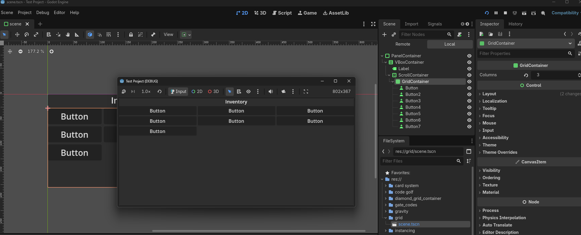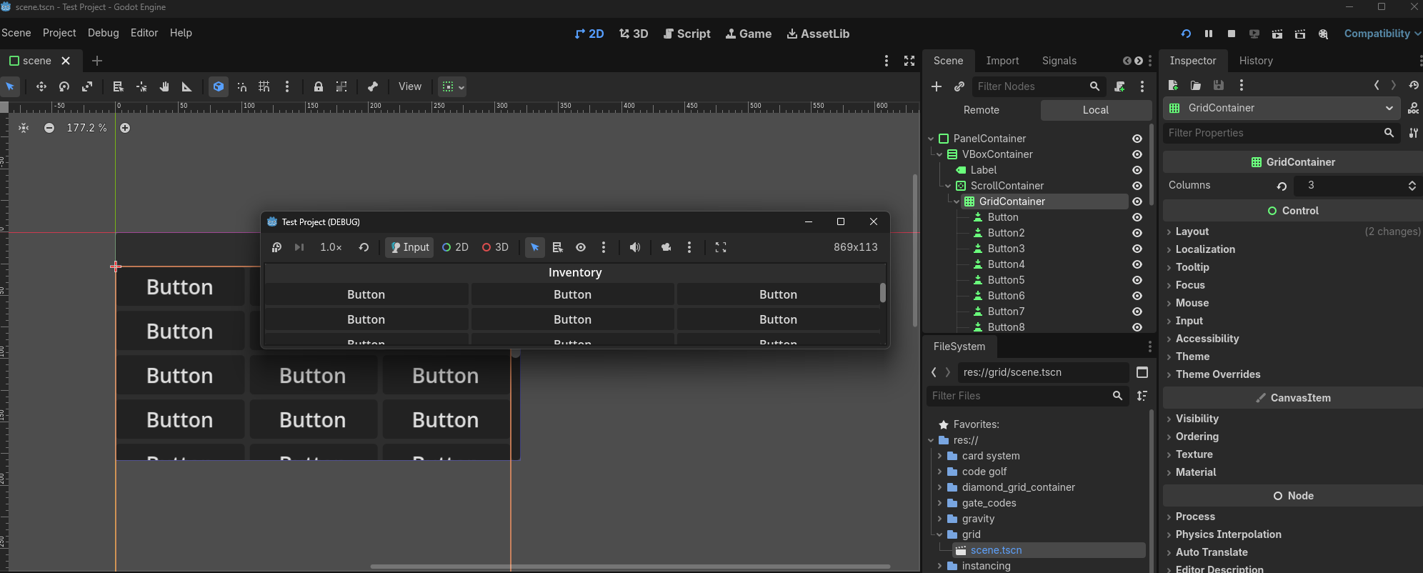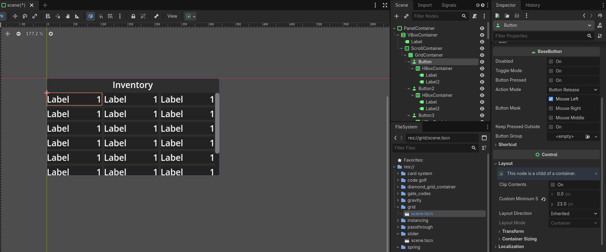 I’m making an inventory panel. My base resolution is low at 320x180. When I scale the resolution up to 1920x1080, the buttons bunch up and have some funky positioning.