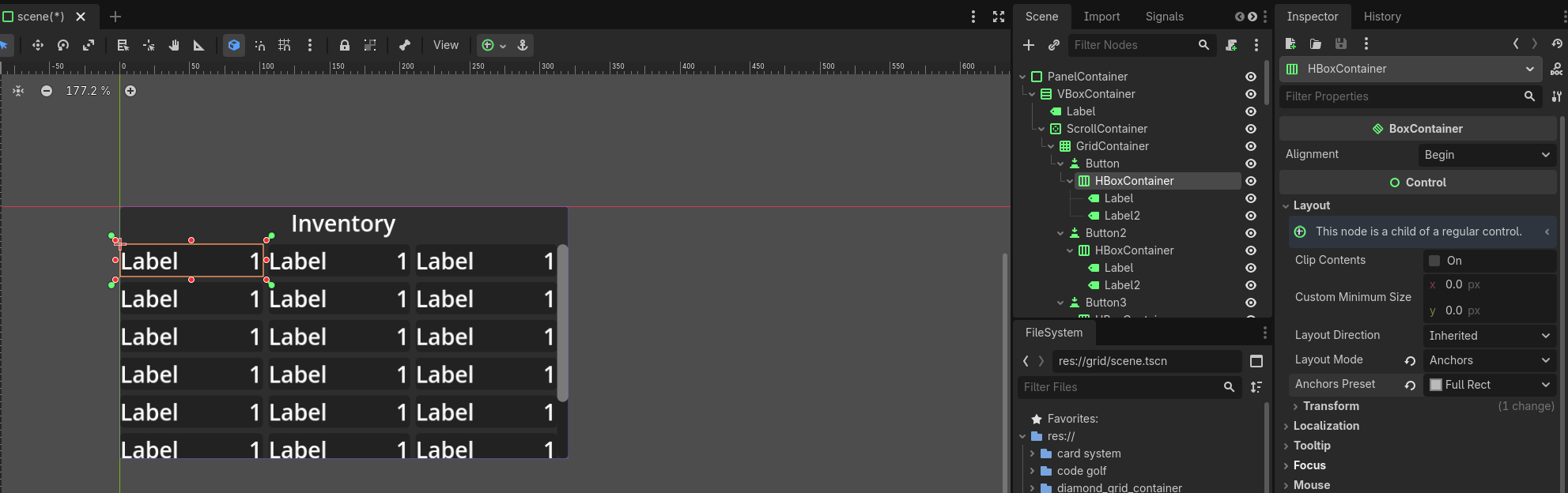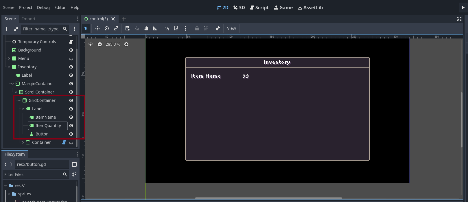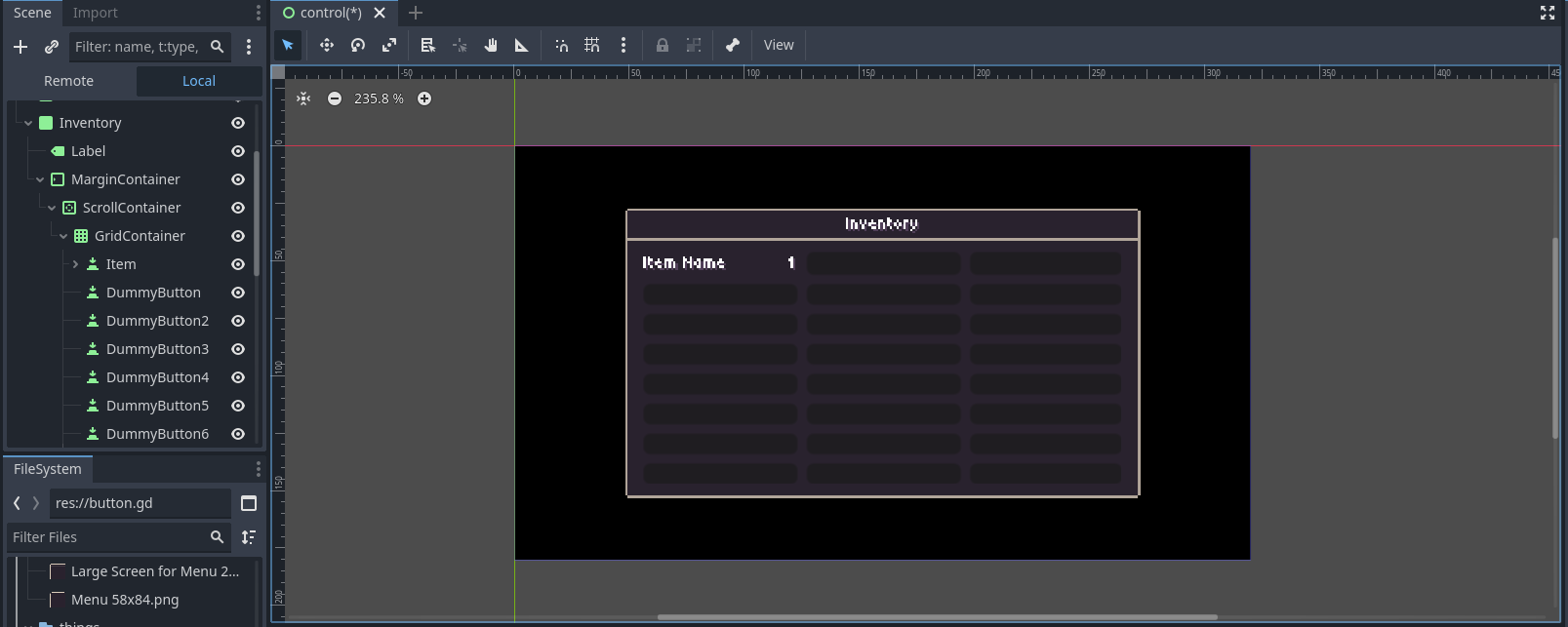 Making item buttons like this, though, works fine. It doesn’t feel as clean but it gets what I’m going for. I put everything underneath a label.