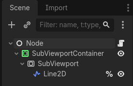 This is the node structure I’m using above. The Subviewport is the same size as the container, and has transparent_bg enabled. The shader is set on the container.