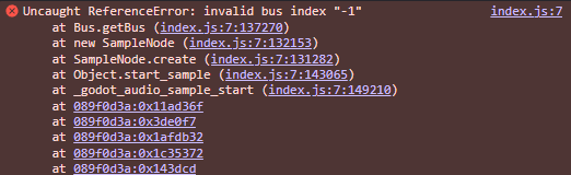 When building and playing my game on a web version, it freezes and I get this error when I open the developer console: " Uncaught ReferenceError: invalid bus index “-1” ".