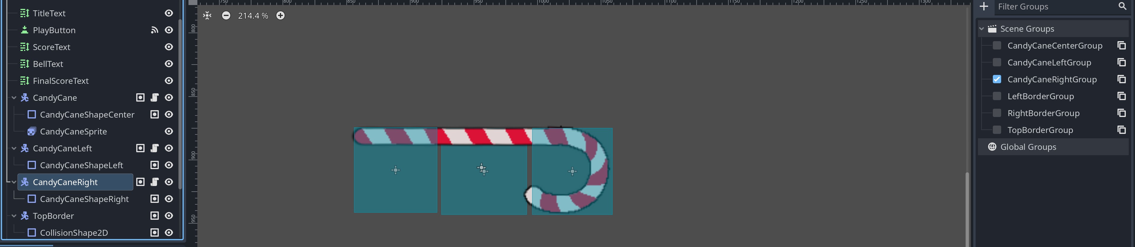 if (GetTree().GetNodesInGroup("CandyCaneRightGroup").Contains((Node)collision.GetCollider()))