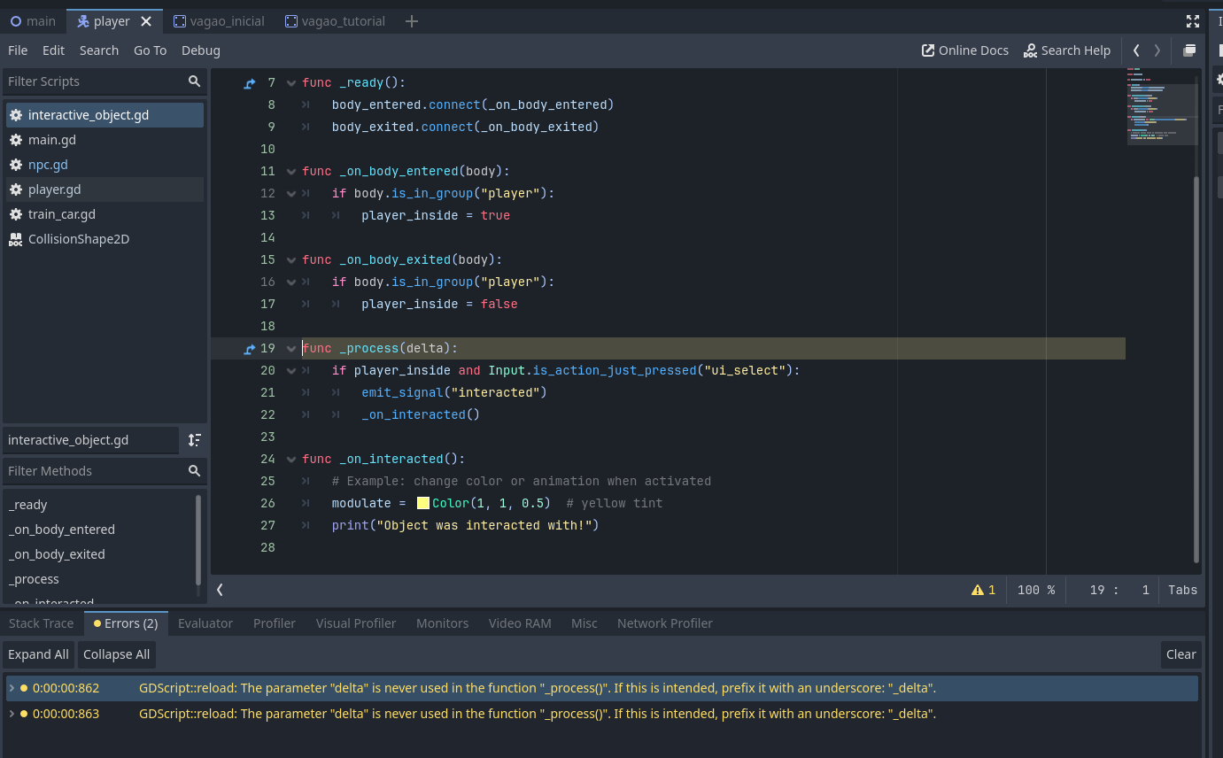 You’ve got two debugger warnings, plus some sort of warning on Main in the top window. Are any of those relevant?