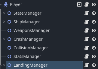 For instance my player, since it is a space ship, has these ‘managers’: