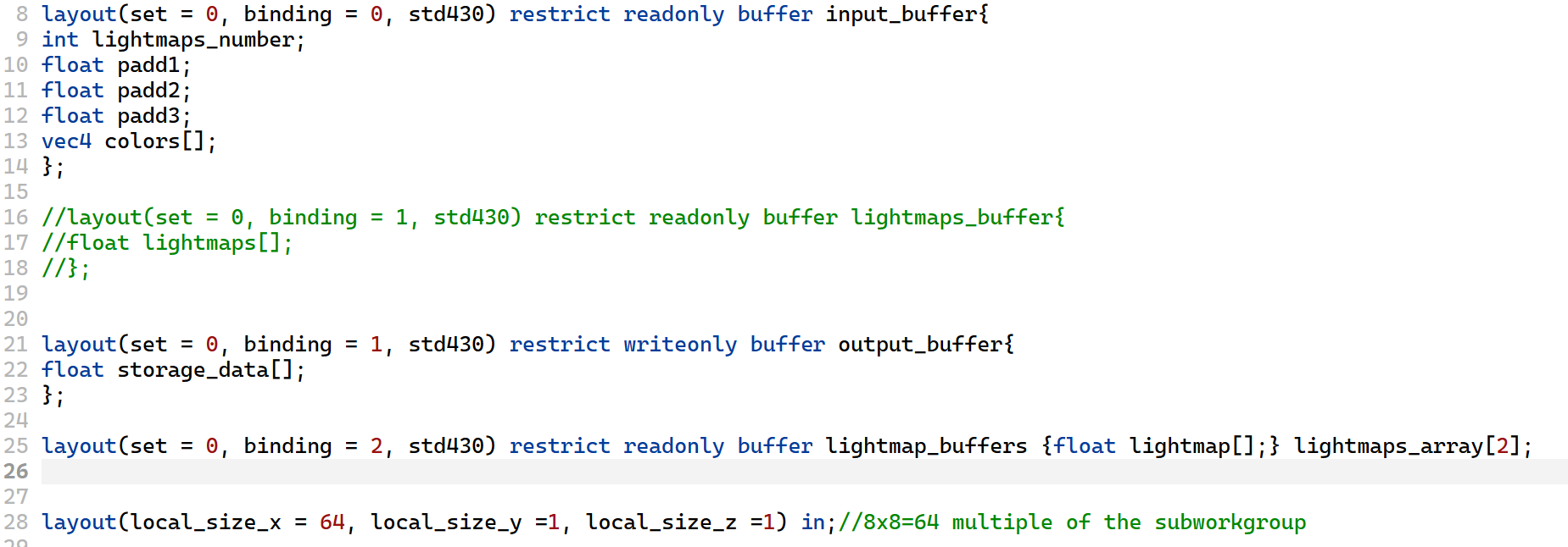 layout(set = 0, binding = 0, std430) restrict readonly buffer input_buffer{