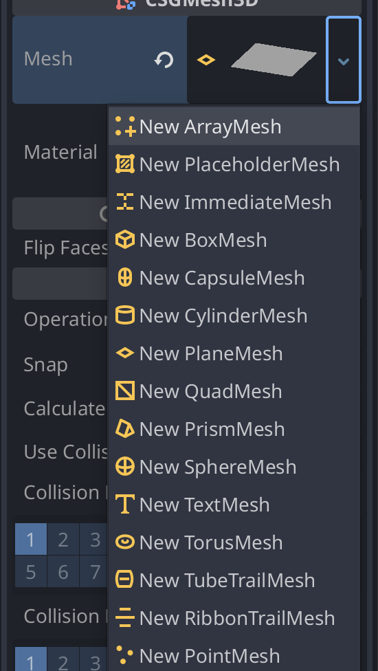 But interesting thing I found during making CSGMesh3D node with Mesh type Plane it was only available to 4.2.2 to 4.3 , newer version do not have this options .