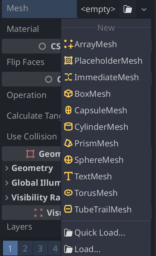 Keep in mind that CSG nodes in general are only for prototyping. They are horrible performance-wise for running games, so they should always be converted into MeshInstance3D nodes for actual gameplay.