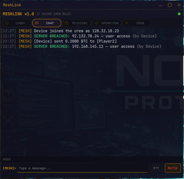1. The “Invisible Crew” (MeshLink) I’m using the Steam SDK for Godot to create a host-authoritative P2P relay. You don’t see “avatars”—you see your crew through the logs. If your partner spikes the CPU on a target, you see the lag. If they exfiltrate data, you see the packets moving. You share Heat, but you have Individual Traces. If one person gets sloppy, the Feds track their IP, putting the whole crew in the crosshairs.