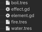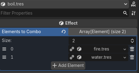 Elements.WATER | Elements.FIRE : "res://path_to_boil_effect.tres", # bitwise OR 0001 | 0010 produces 0011