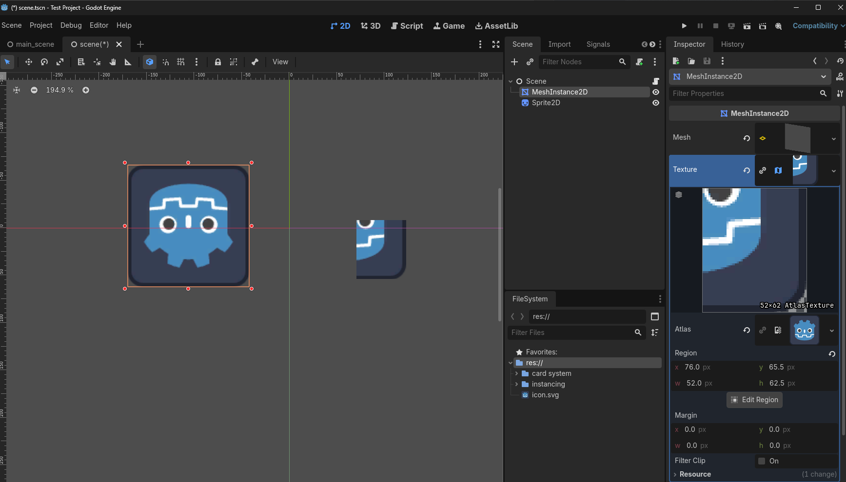 I have also read that it is better to use MeshInstance2D and load a texture there. However, without “regions”, this may not be convenient for my single PNGs.