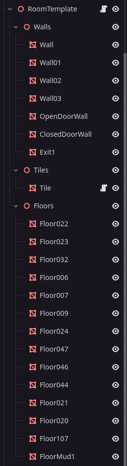 My rooms consists of MeshInstances as Tiles of the same size and a Node3Ds as parents. Now I want to align them together randomly. In the guide they are using Position Markers on the exits. Is there an equal way I could do this in Godot ? I am struggling to find a way to have those Exit Markers in my Rooms and even perfectly aligned .. also do I rotate each MeshInstance on its own or only the Parent Node3D e.g. “RoomTemplate” (Screenshot) ? (Also for putting together my meshes I use a specific snap addon “Snappy”)