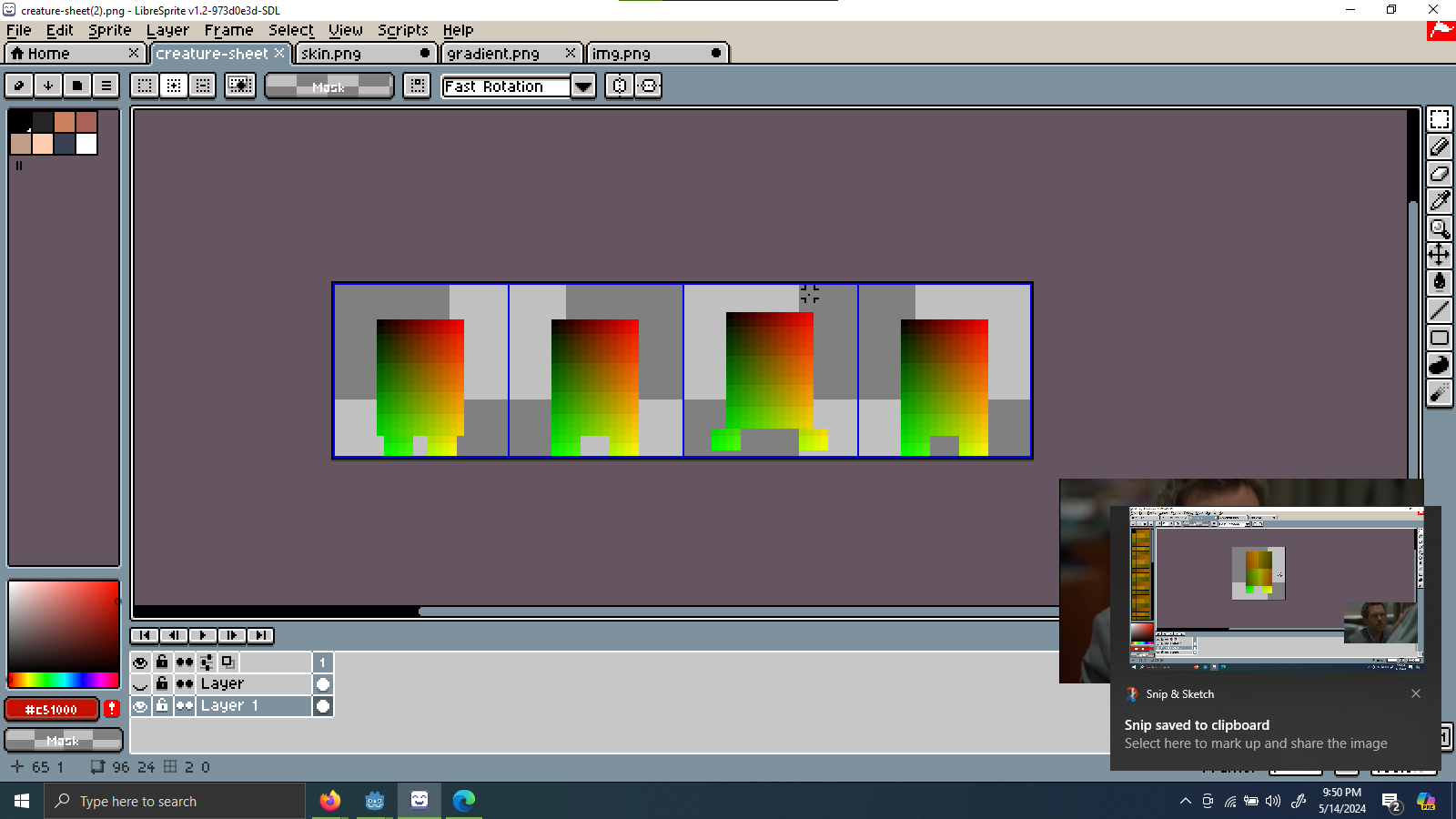 Ok that looks like it might actually be working. What does your sprite sheet look like at this point?