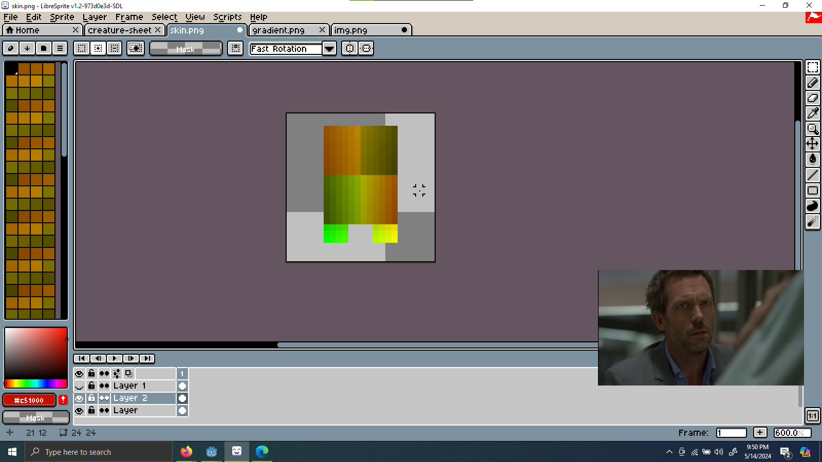 vec4 color = texture(Skin, scaledUV); // collect the rgba from the ‘skin’ sprite based on the scaledUV