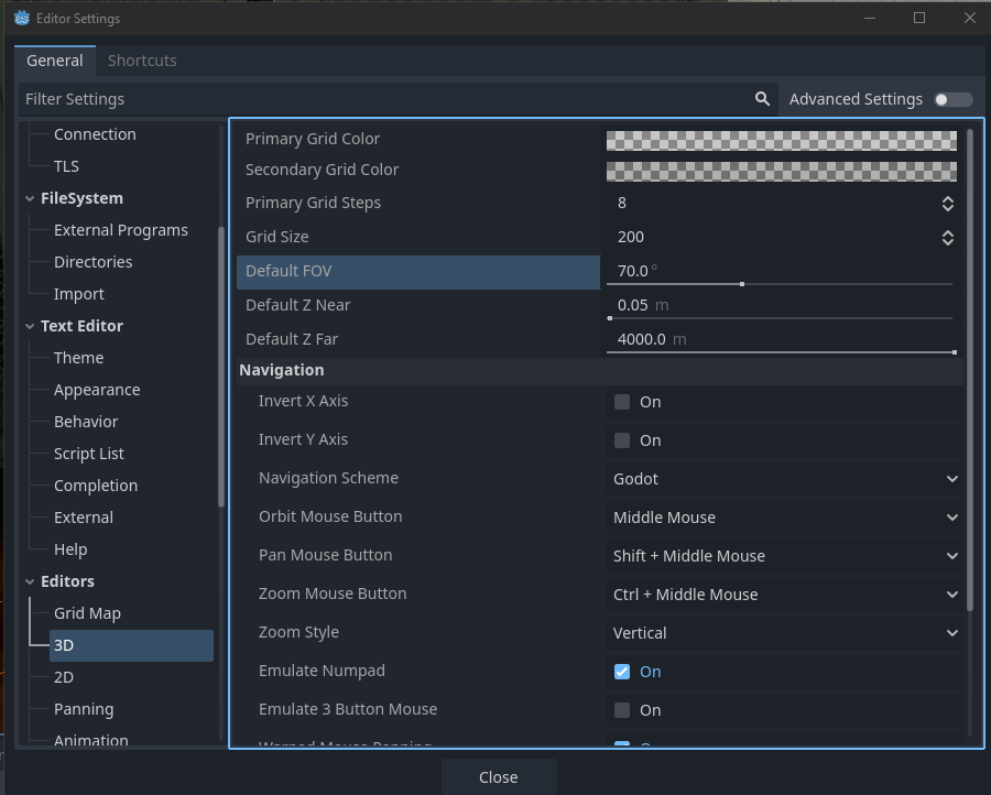 Change Default FOV, restart Godot.