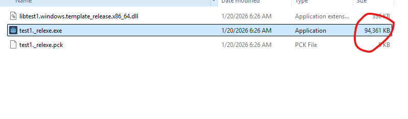 I’m sure I’m missing something here, but how come my simple 2D scene with Godot image exported to Windows exe in release file size is 94 megabytes? Why so big? Also, initial loading time has latency.