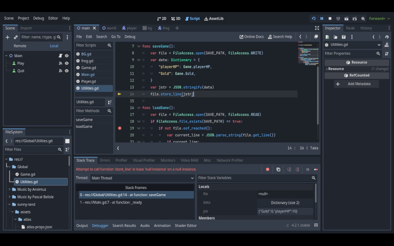 Keep getting an error stating “Attemp to call function store_line in base null instance on a null instance.” What am I doing wrong?