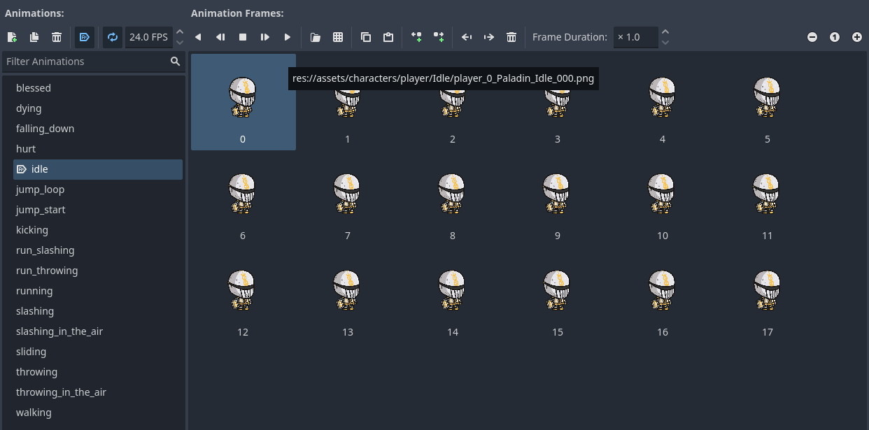 In the Idle blendSpace2D of my AnimationTree when the animation of idle start, the first frame of every idle facing is idle_left. This problem only appears on this blendspace. Also the idle facing dirction is the only facing direction which is not programmed in a state of the state machine.