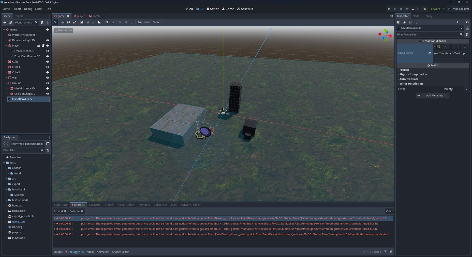 I’m not running the latest version of fmod-gdextension because the editor would crash during exporting. Also, I’m using FMOD 2.02.30.
