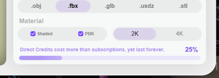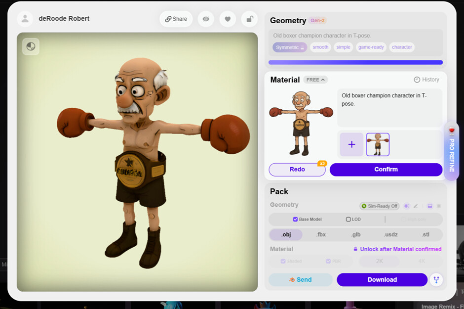Confirm the material, select FBX, and download the whole thing as FBX.