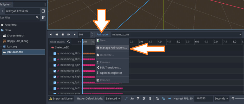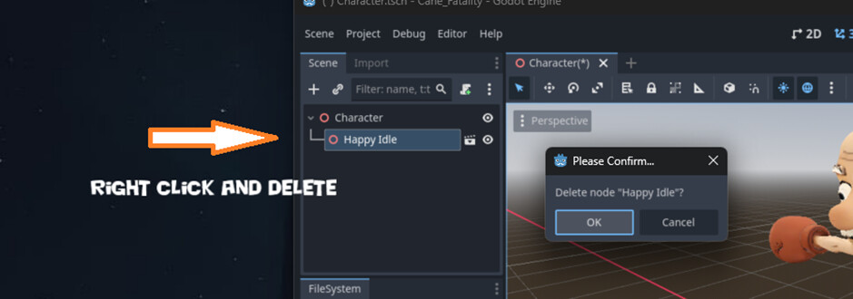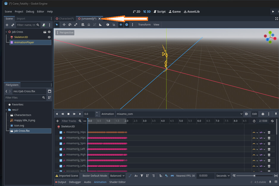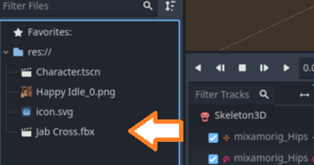 Now clean up the extra FBX junk in your scene tree. and rename your animation to “default” (or idle)