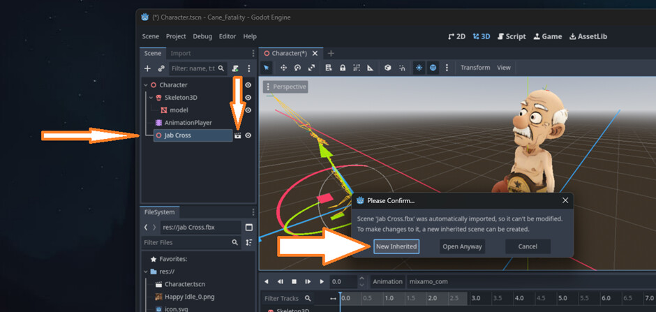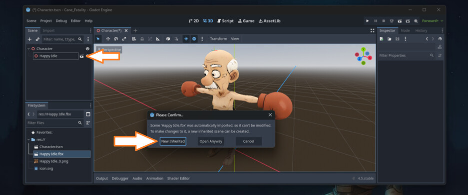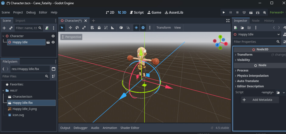 So now you have a Character node, and the inherited Happy idle file.