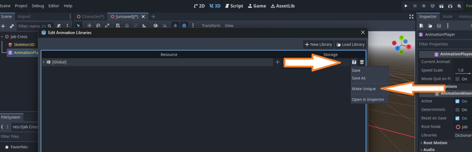 Boom!!! you now have a character.tscn with multiple animations. ![]()