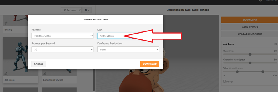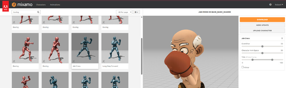 Back to Mixamo—search for Boxing → select Jab Cross.