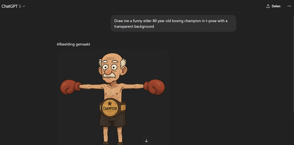 First things first: draw your character in a T-pose. Don’t worry if you can’t draw (ChatGPT is your friend here ![]()