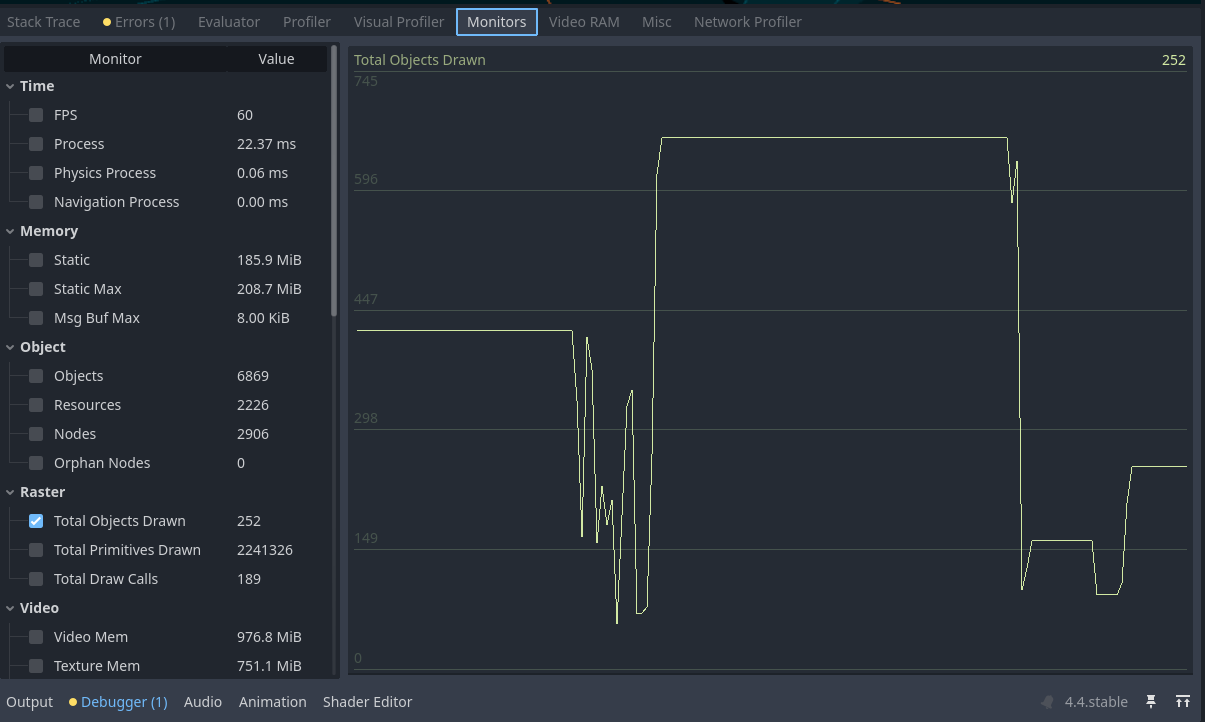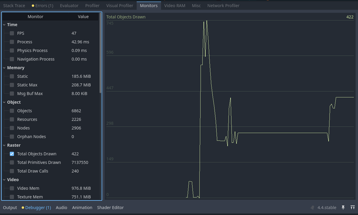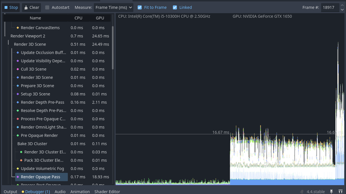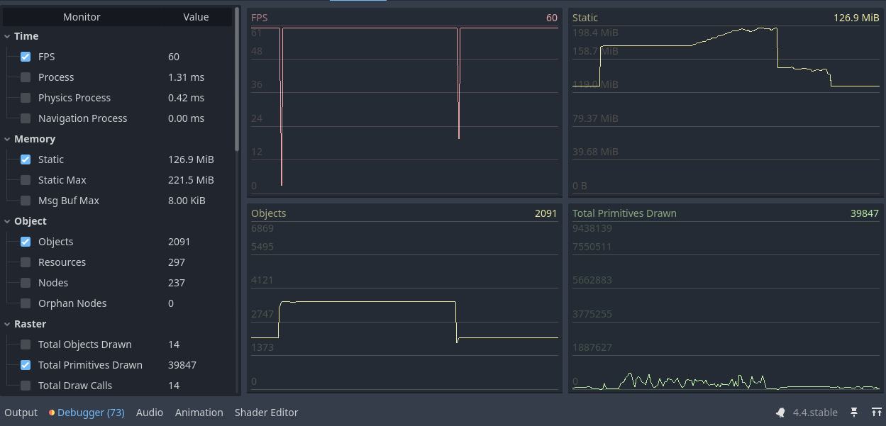 Also I mentioned that I have these insane spikes when I have my game launched and then visit the godot editor just to see how it performs, when I look at the charts, the spikes start to appear as soon as I open the visualizer. When I play the game these spikes don’t seem to occur very often