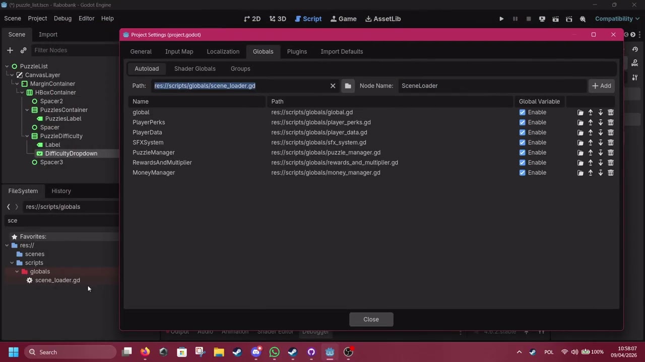 - Go to Project Settings > Globals