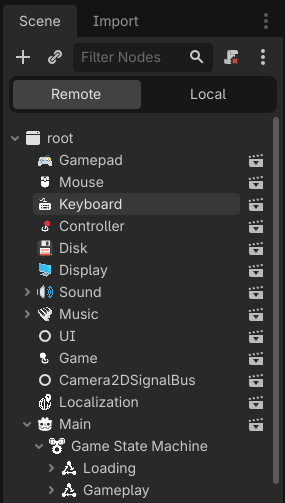 You talk about contexts here. I use a state machine instead. Same idea, different name. (Unless you feel there are differences, in which case I’d be interested to hear them.) For me this was a journey of trial and error. I originally had four state machines that all did the same thing: Node, Control, Node2D and Node3D. The icons were color-coded and they could have spatial knowledge as part of the machine.
