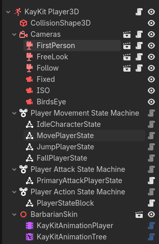 You talk about state machines. I’m a big fan. Something you might look into for your own enjoyment is Resource-based or Node-based state machines. I have adopted a pull-based (as opposed to push-based) Node state machine. You can look at it and play with it using my State Machine Plugin if you’re interested. I use it for game state, as well as player states.