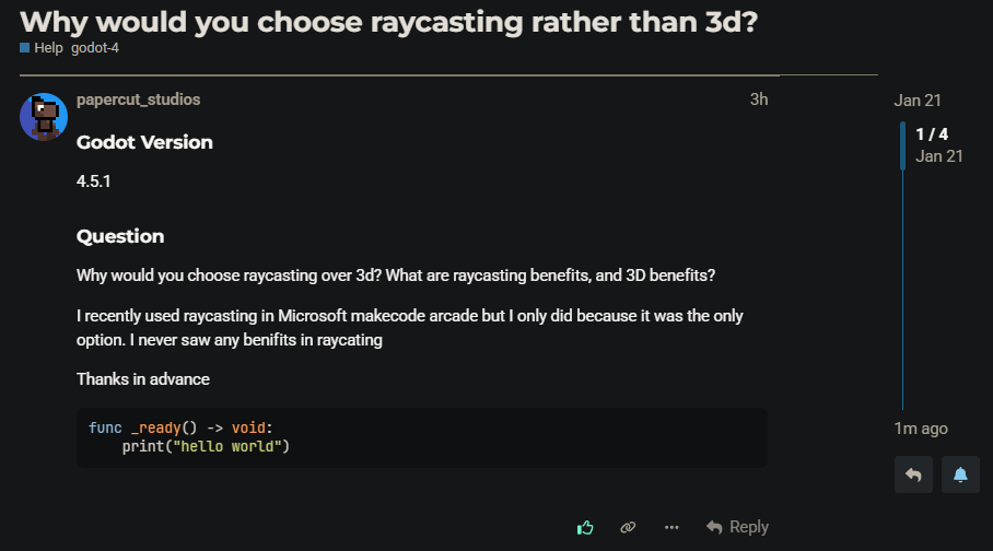 That ai thread has probably became like a godot forum pop culture reference and it’s legacy will live on. Must we get the mods to start to ban everybody who leaves on the template when they don’t have code for suspect of being a bot? : )