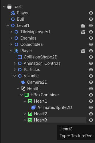 As you can see, you have two player nodes each running your player script. The first one doesn’t have any children so the path you assigned to health_parent is incorrect, resulting in null reference.