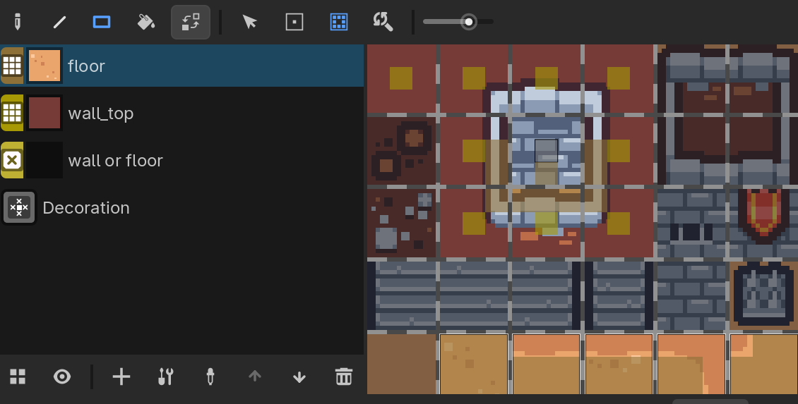 I have left a gap immediately above the floor, which is correctly being filled in with the wall decoration tile I set up.