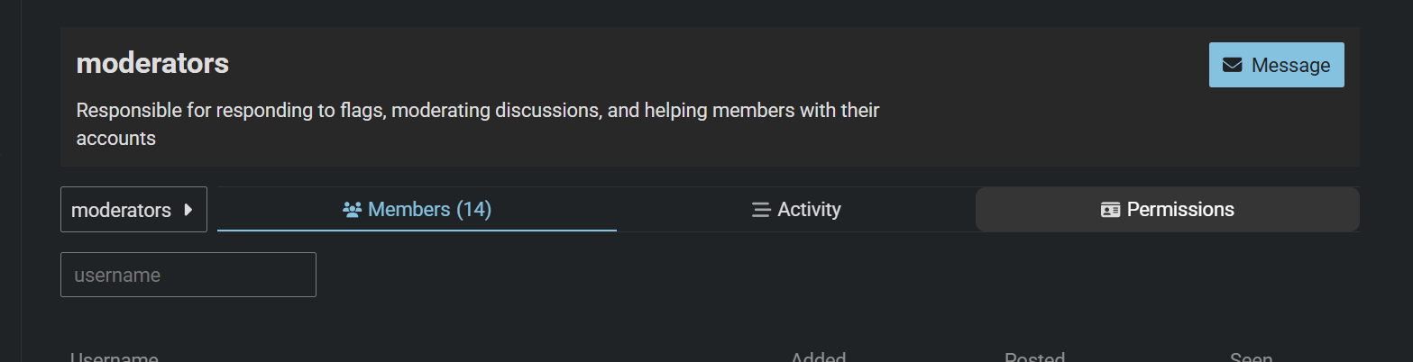 Alternatively, you can click on Inbox on the left side menu, click on New Message, and you can select moderators as the group you’d like to send a message to.