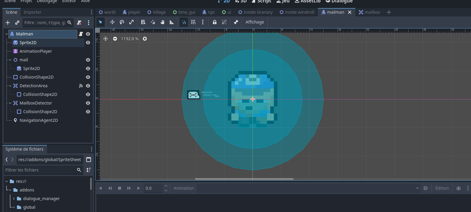 I have a mail man with walking animation (left, right, down, up) and idk how to animate them since its an npc… i also have some other animations for my mail man such as throw mail right and left i want my mail man to play these animations when he enter the hurt box of the mailboxes (it’s okay if you only can help me on the first part i know the second one is kinda hard to understand sorry english is not my first language)