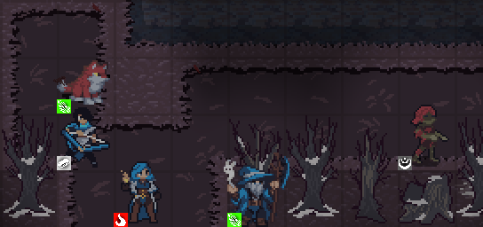 Additionally, some units can fly, and stand on top of objects that are normally walls, so a scenario like this is possible: Where the unit is sorted to the front (thanks to y sorting) and you can still see the tree behind them. This is currently functional and doesn’t need any changes to make work.