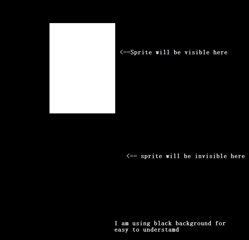 You can use masking, here’s a simple way to do that first you have to draw a sprite that is white where you want to display your sprite and transparent where you want to make it not visible,Like this