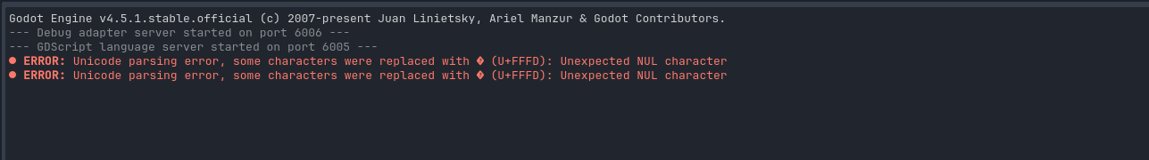 I tried having an LLM write me a Python script to scan through all of my GDScript files looking for invalid characters, but nothing was found. If I could find out what file and what line number is associated with the errors, I’m sure that I could replace the text and fix the issue. There are potentially hundreds of culprits, and so it’s not practical for me to manually go through and replace all the text.