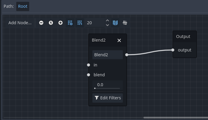 I have an AnimationNodeBlendTree object which I created programmatically, and an output node (AnimationNodeOutput object) that was created along with this AnimationNodeBlendTree object.