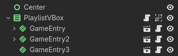PlaylistVBox is the main container, I want it to center vertically based on which child GameEntry is selected.