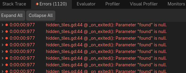 The problem I’m stumped on now is whenever I move the light too quickly, the _on_exited function sometimes doesn’t work, resulting in tiles left behind that still collide with the player, which is also shown in the video.