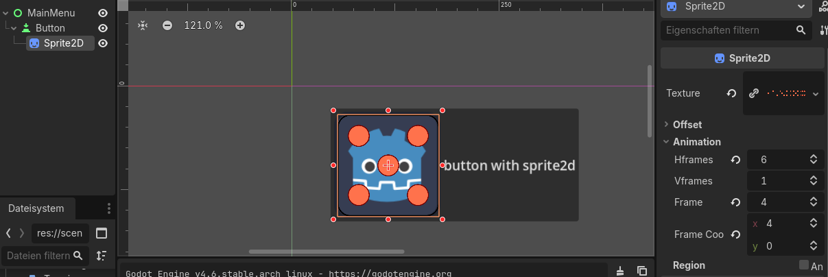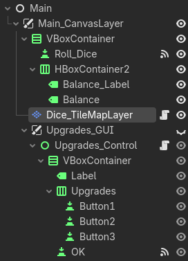 As an alternative: the quick hack would be putting a Sprite2D under the Button and abuse the animation functionality (see the Frame value 4 corresponding to the five on the dice).